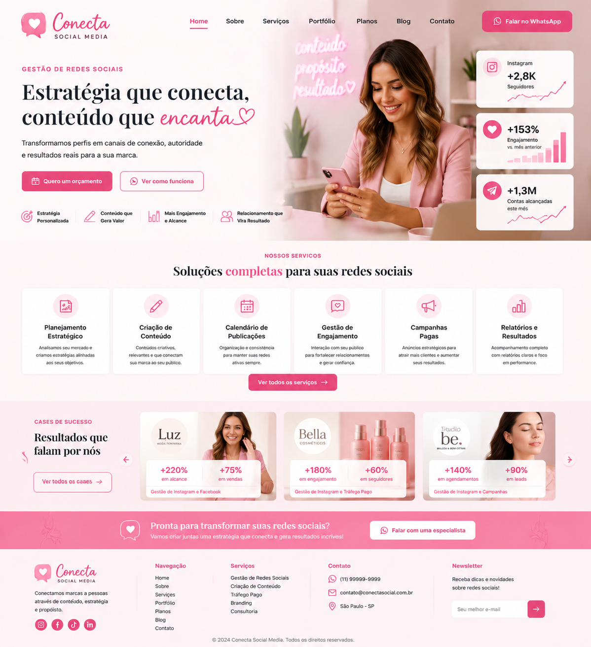 Nossa assinatura é um pacote completo que inclui design moderno, hospedagem rápida, segurança SSL e manutenção contínua.